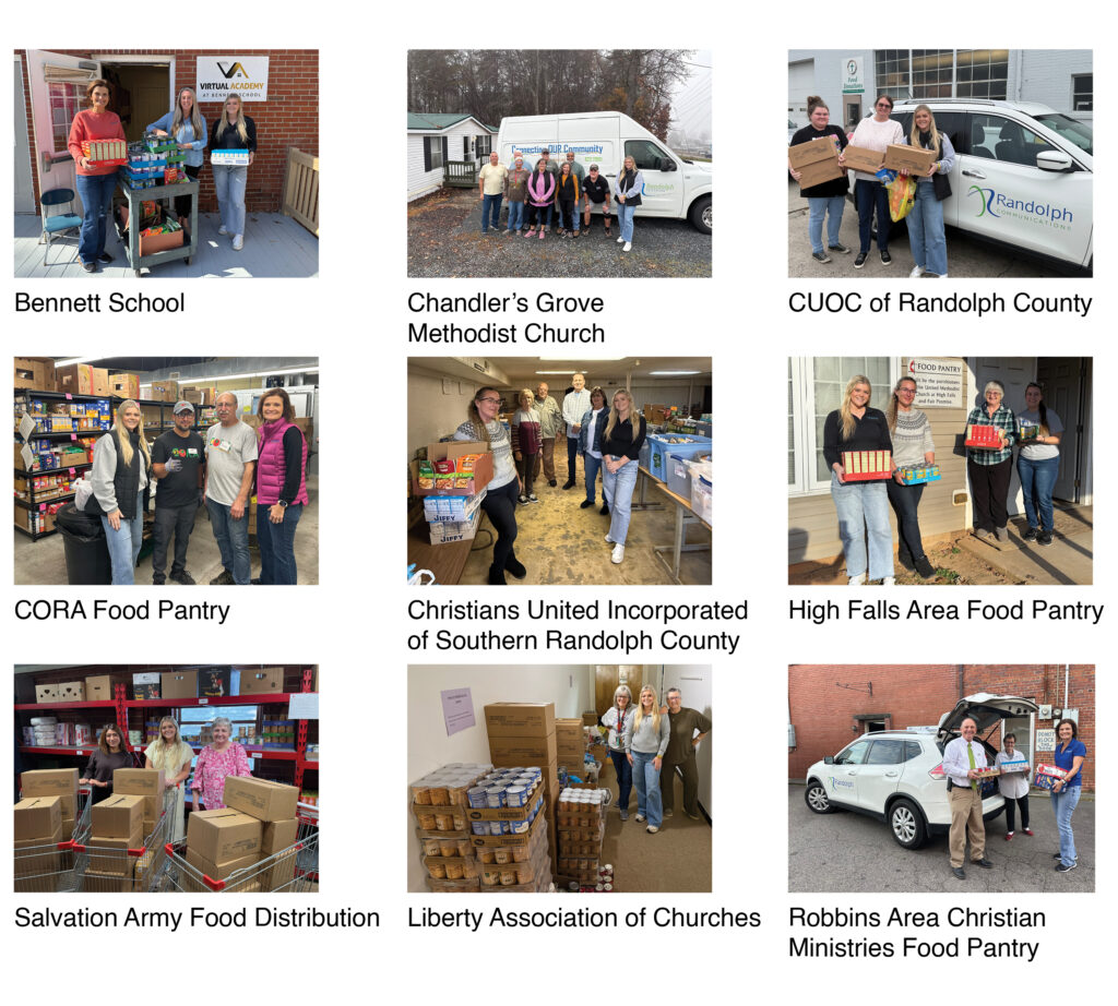 Asheboro, NC – Randolph Communications held their ninth annual Food Harvest Drive during the months of October and November, collecting non-perishable food items at their two offices located in Asheboro and Liberty. Donations received for the Food Harvest Drive were matched by Randolph Communications, which totaled 16,444 non-perishable items. All items were donated to nine local food banks in their service areas.